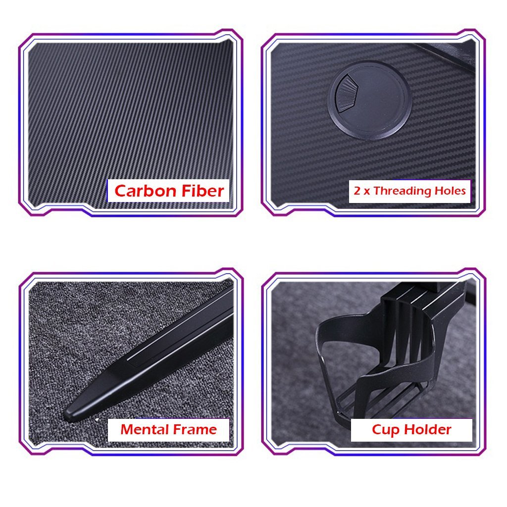 Our Gaming Desk features a spacious tabletop for ultimate gaming gear. Carbon fiber surface features with a smooth and gorgeous texture. The ergonomically contoured desktop allows a closer distance to the gaming screen.