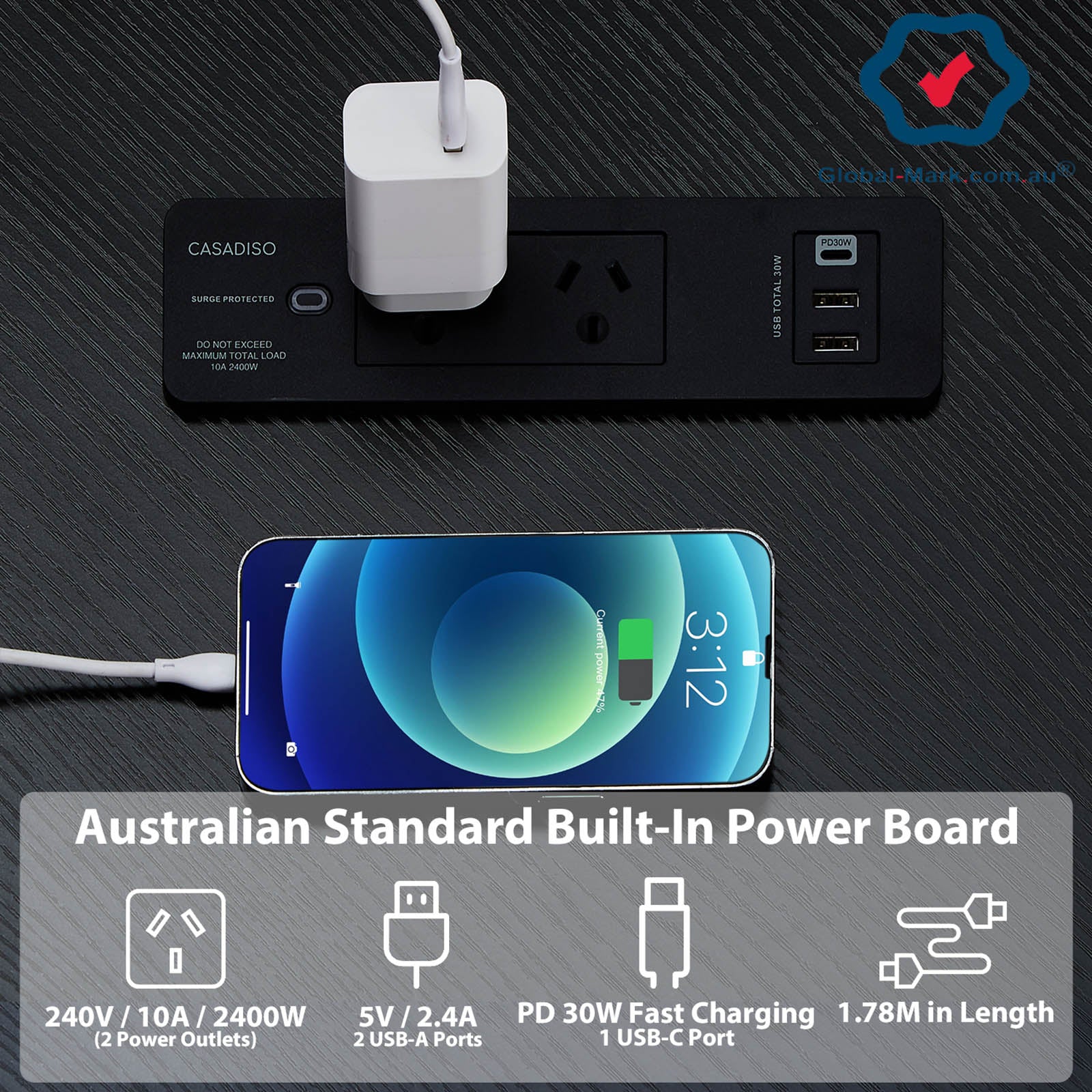- Certified Electrical Safety: As the only furniture brand with Australian Global-Mark electrical safety certification, this desk guarantees safe electricity usage. It includes PD 30W fast charging, USB Type-C support, and safeguards against lightning and power surges. The 1.78m flame-retardant cord caters to your power needs with assurance.