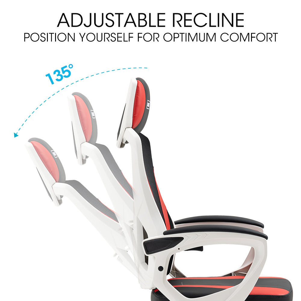 OVERDRIVE Ergonomic Mesh Gaming Chair with Lumbar Support & Headrest - Black/White/Red