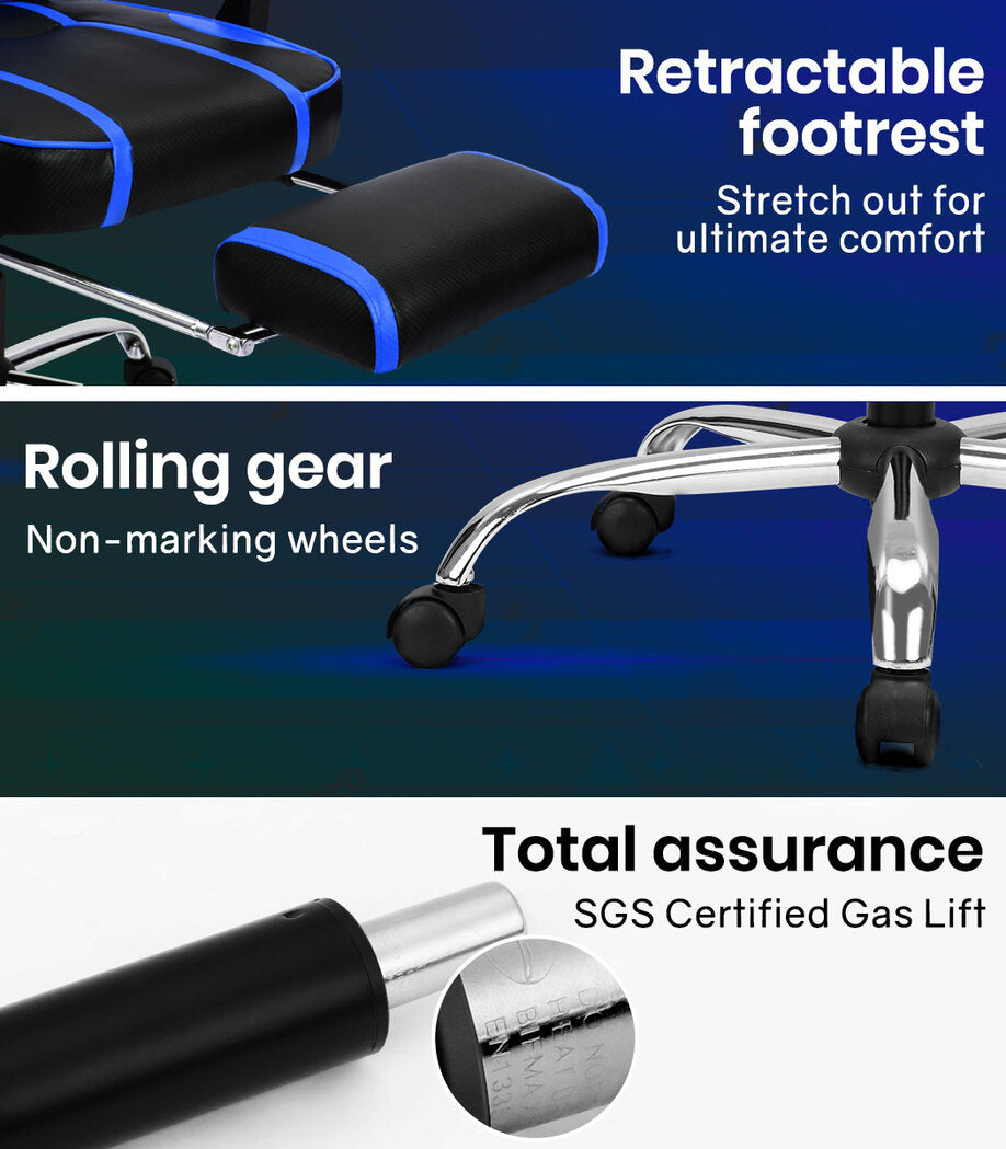 OVERDRIVE Elite Series - Reclining Gaming Chair with Foot Rest - Black/Blue