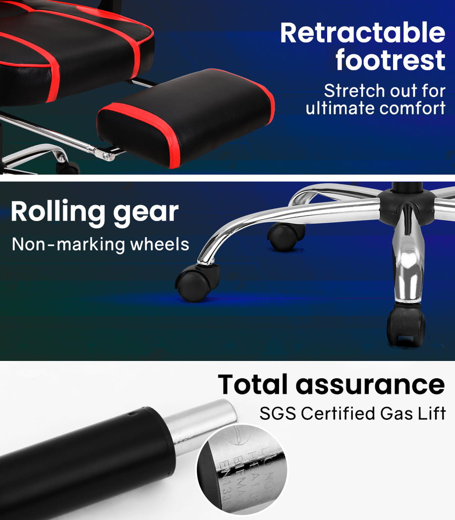 OVERDRIVE Elite Series - Reclining Gaming Chair with Foot Rest - Black/Red